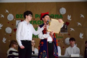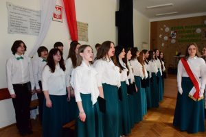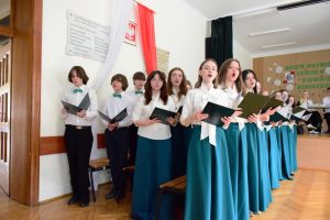 Obchody rozpoczęliśmy od obejrzenia okolicznościowej akademii przygotowanej przez klasę 1a, pod kierunkiem wychowawczyni p.prof. Agnieszki Mateckiej. W akademii wziął udział także chór szkolny pod dyrekcją p.prof. Małgorzaty Piotrowskiej.
