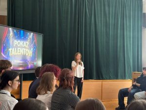 Następnie rozpoczął się Pokaz Talentów, nad którym czuwała p.prof. Iwona Kopeć. Uczniowie zaprezentowali swoje zainteresowania, pasje, artystyczne umiejętności.
